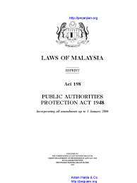 Related : Public Authorities Protection Act 1948 : Published by the commissioner of law revision, malaysia under the authority of the revision of laws act 1968 in collaboration with percetakan nasional malaysia bhd 2006..